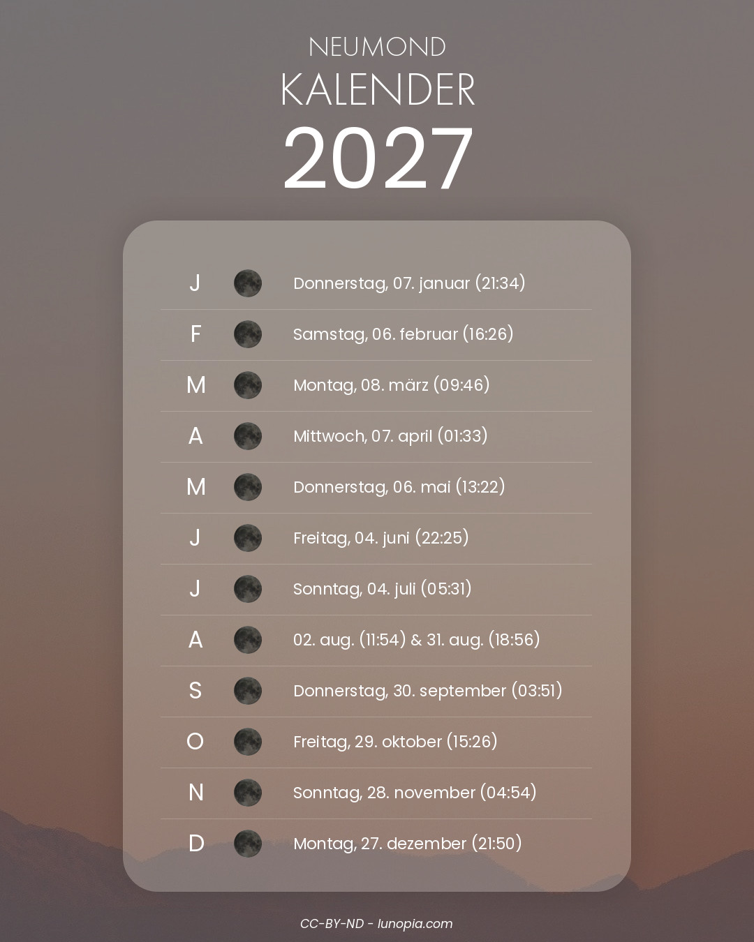 Der nÀchste Neumond findet am dienstag, 17. februar 2026 um 12:57 statt (in 13 Tagen).