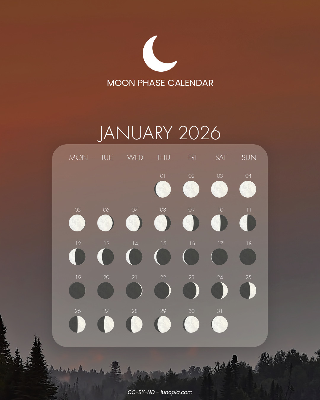 | Sunday, 01 February 2026Sun. 01 | 🌕 | 100 % | Full moon |