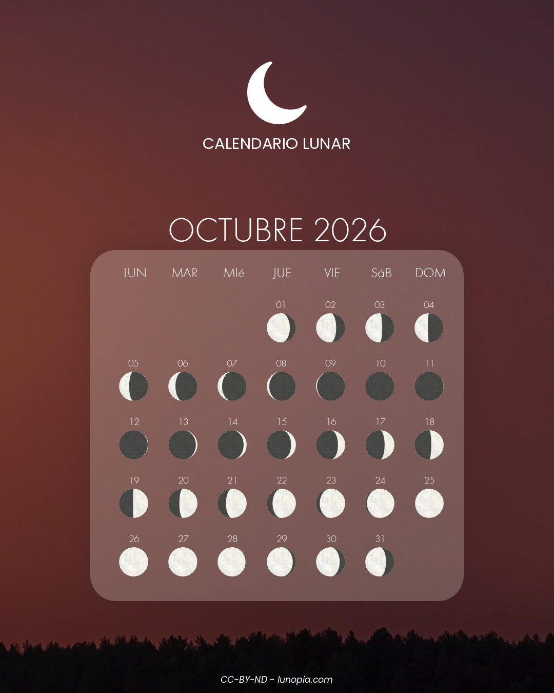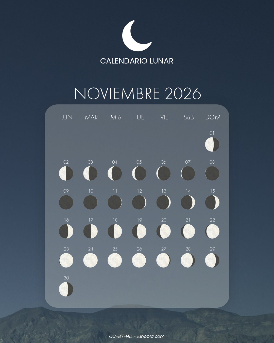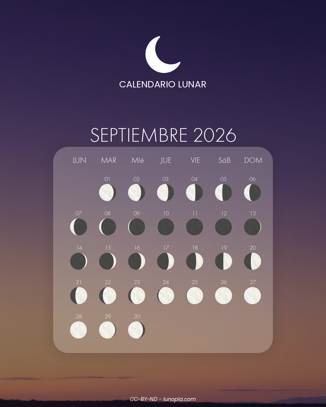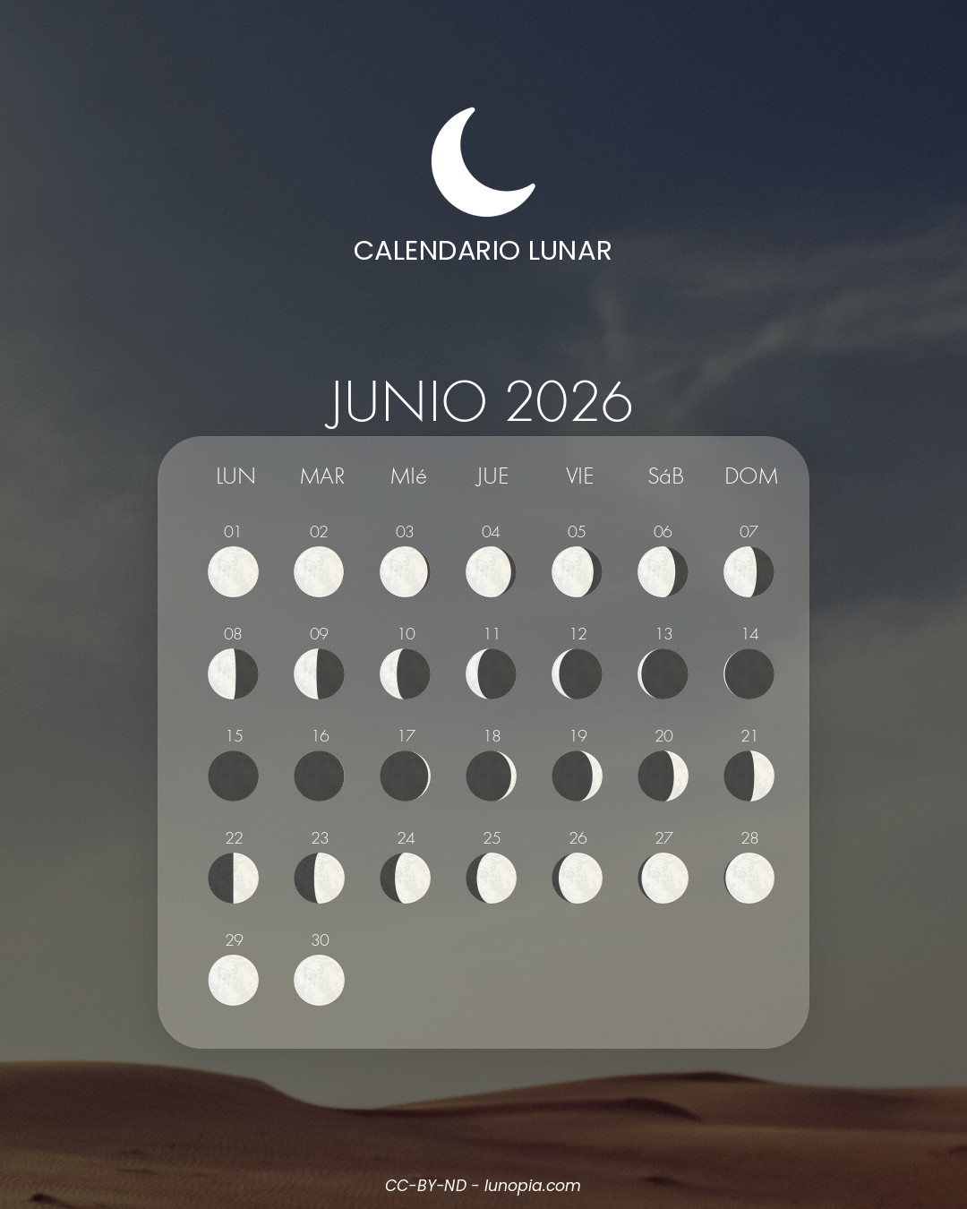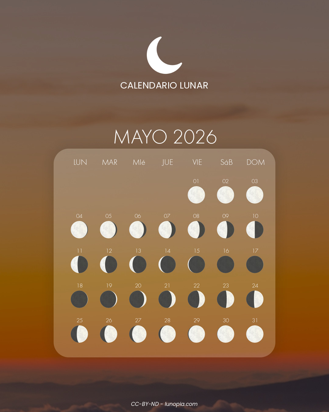 | Domingo, 01 de febrero de 2026Dom. 01 | 🌕 | 100 % | Luna llena |