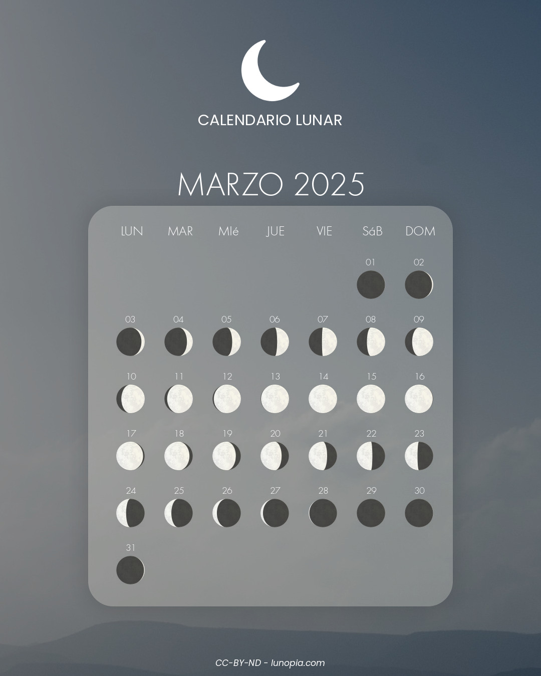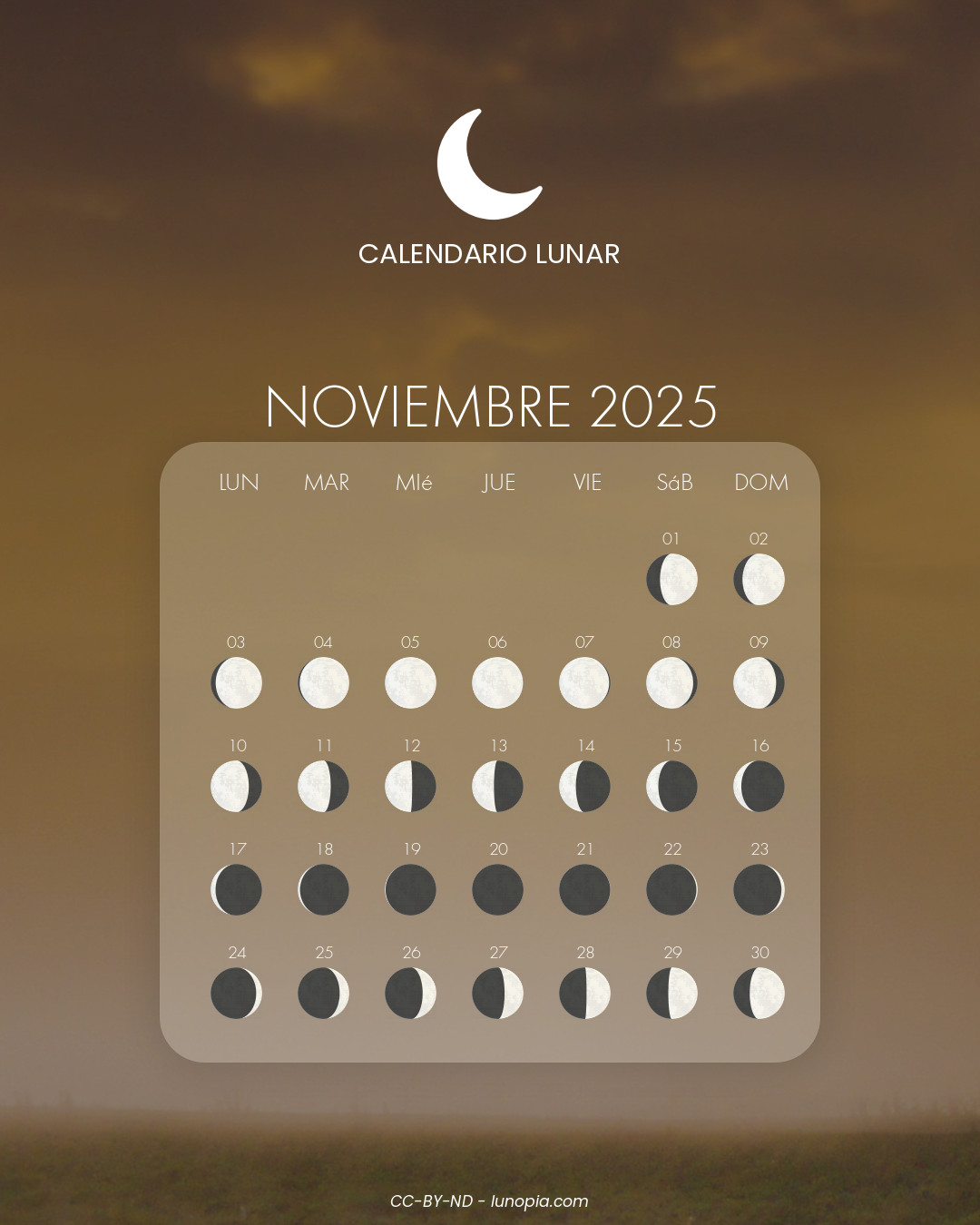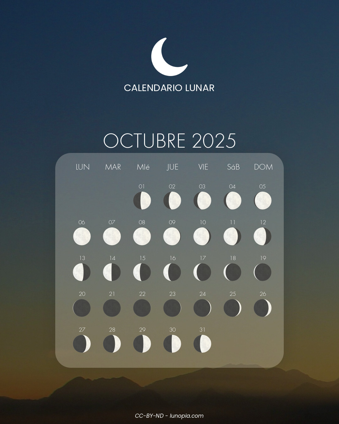 | Martes, 21 de octubre de 2025Mar. 21 | 🌑 | 0 % | Luna nueva |