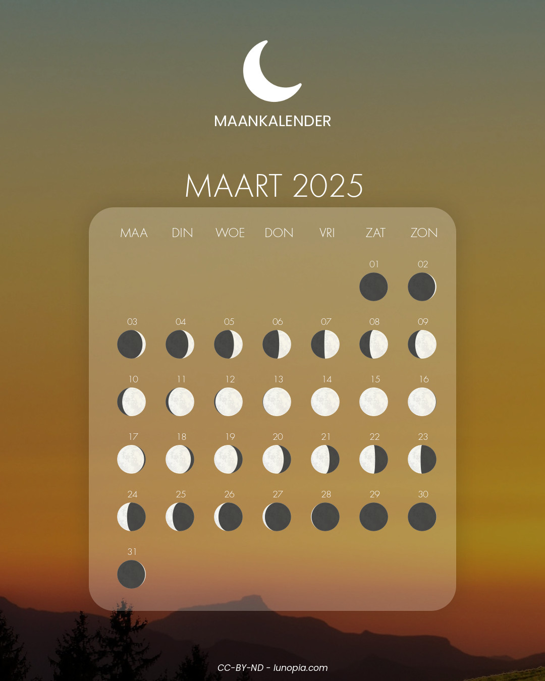 De maankalender hieronder toont de fasen en sterrenbeelden van de maan voor elke dag van de maand. Het wordt gebruikt voor het plannen van activiteiten met betrekking tot de natuur, zoals vissen en landbouw, maar ook voor spirituele praktijken en rituelen.