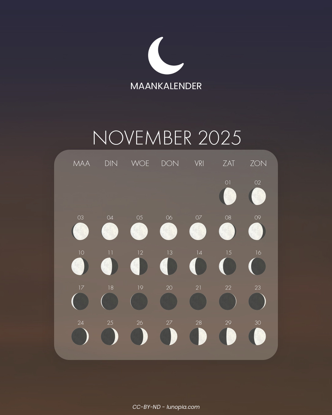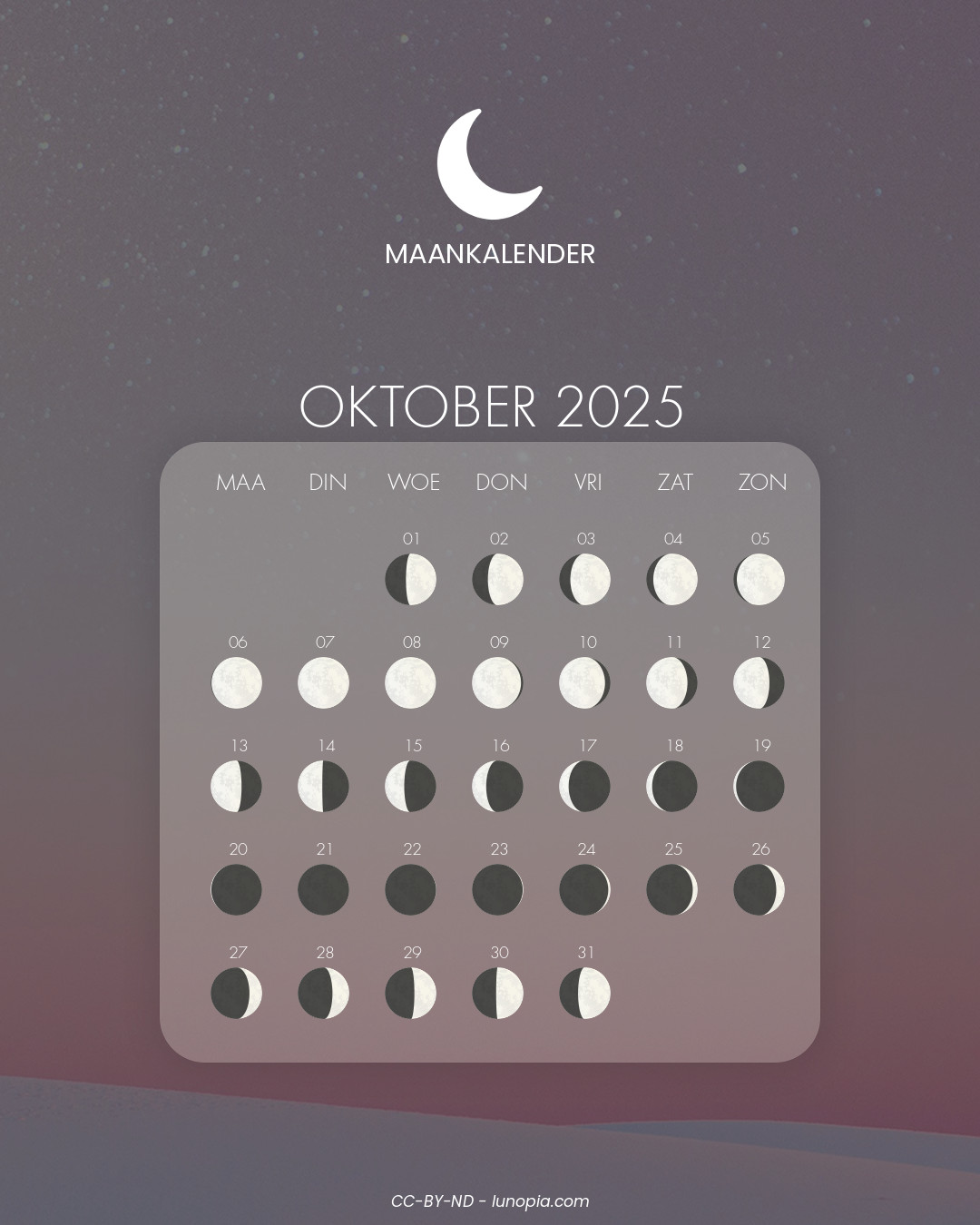 | Dinsdag 21 oktober 2025Di 21 | 🌑 | 0 % | Nieuwe maan |