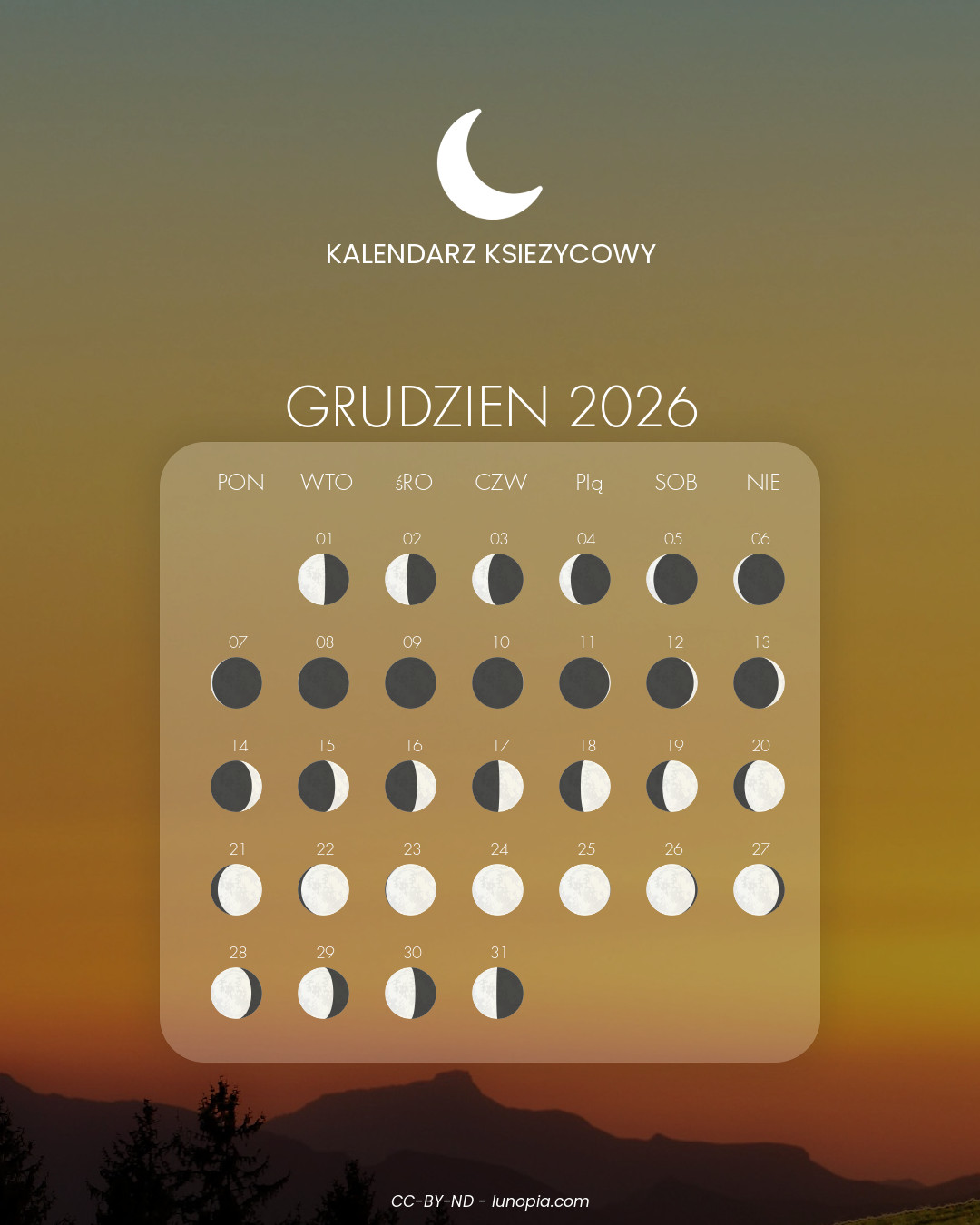 | Czwartek 12 luty 2026Czw. 12 | 🌘 | 28 % | Malejący sierp |
