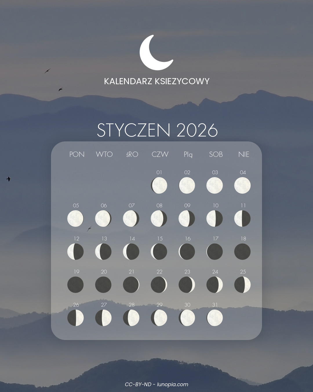 | Niedziela 01 luty 2026Niedz. 01 | 🌕 | 100 % | Pełnia księżyca |