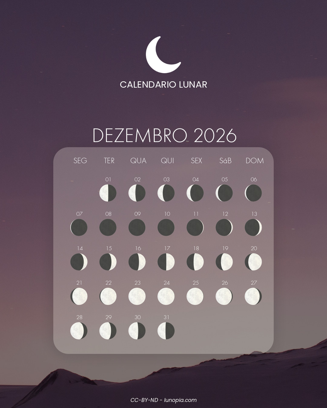 | Quinta-feira, 12 de fevereiro de 2026Qui. 12 | 🌘 | 27 % | Lua minguante |