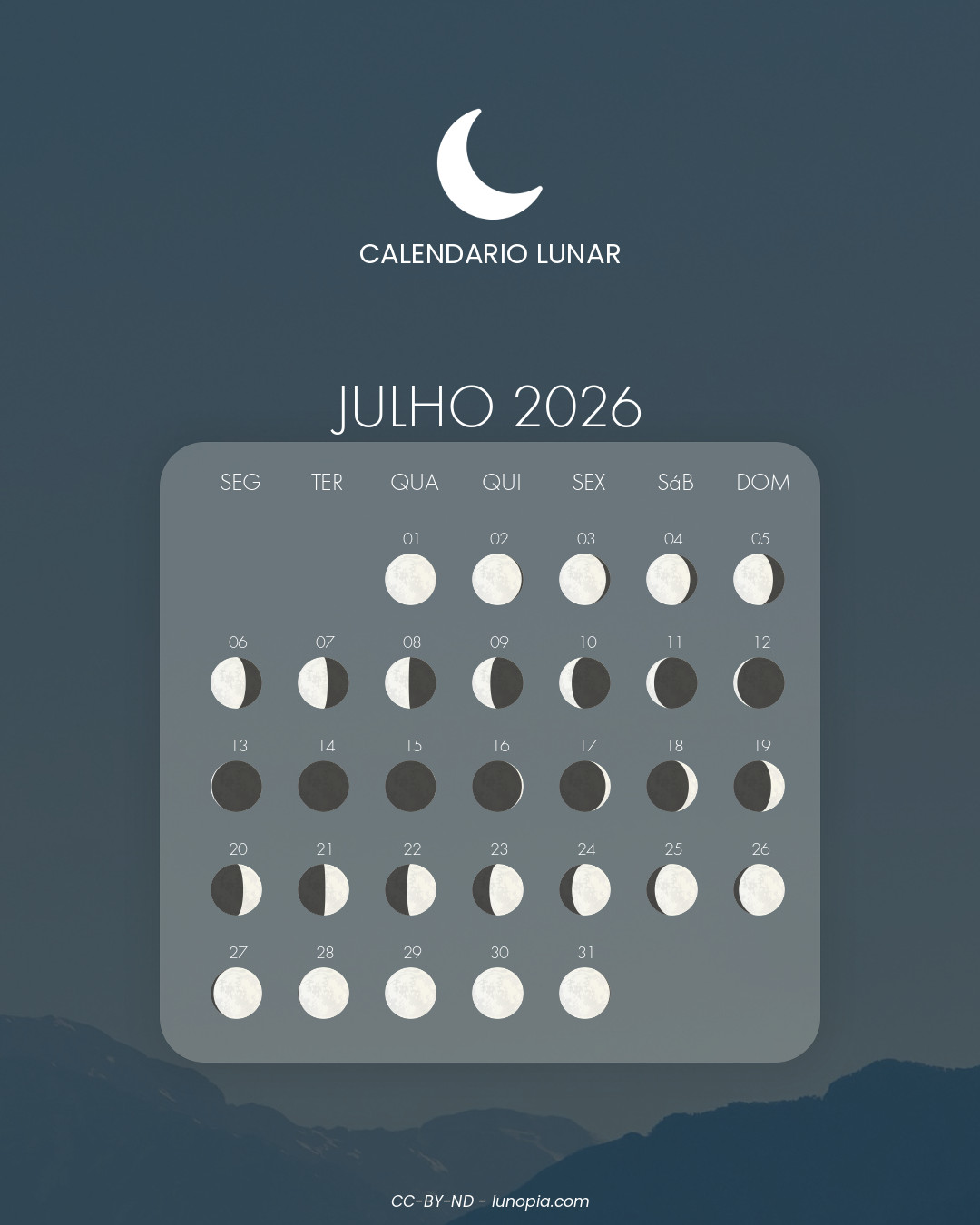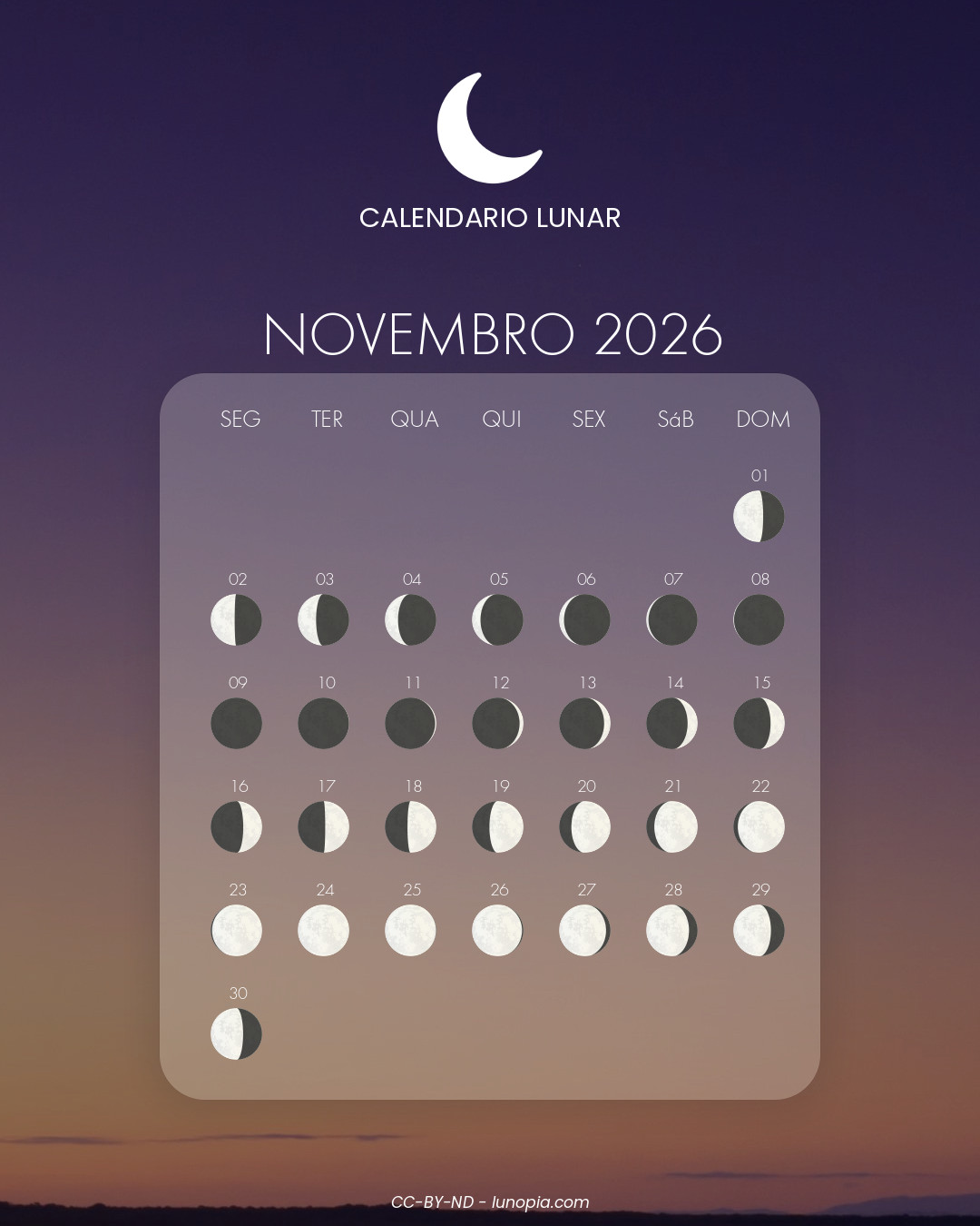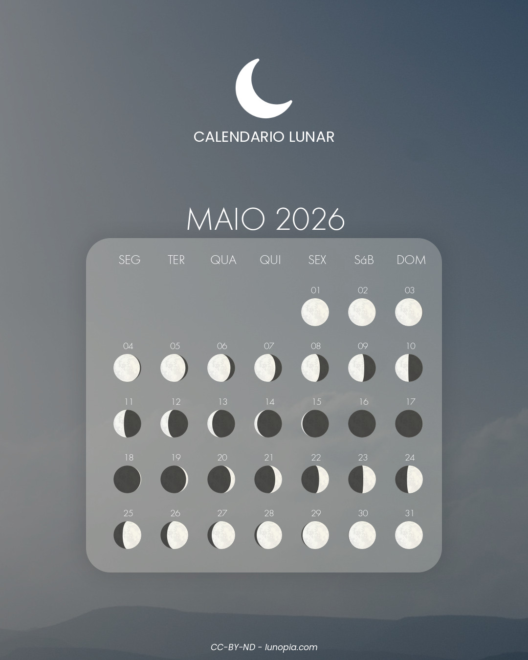 | Domingo, 01 de fevereiro de 2026Dom. 01 | 🌕 | 100 % | Lua cheia |