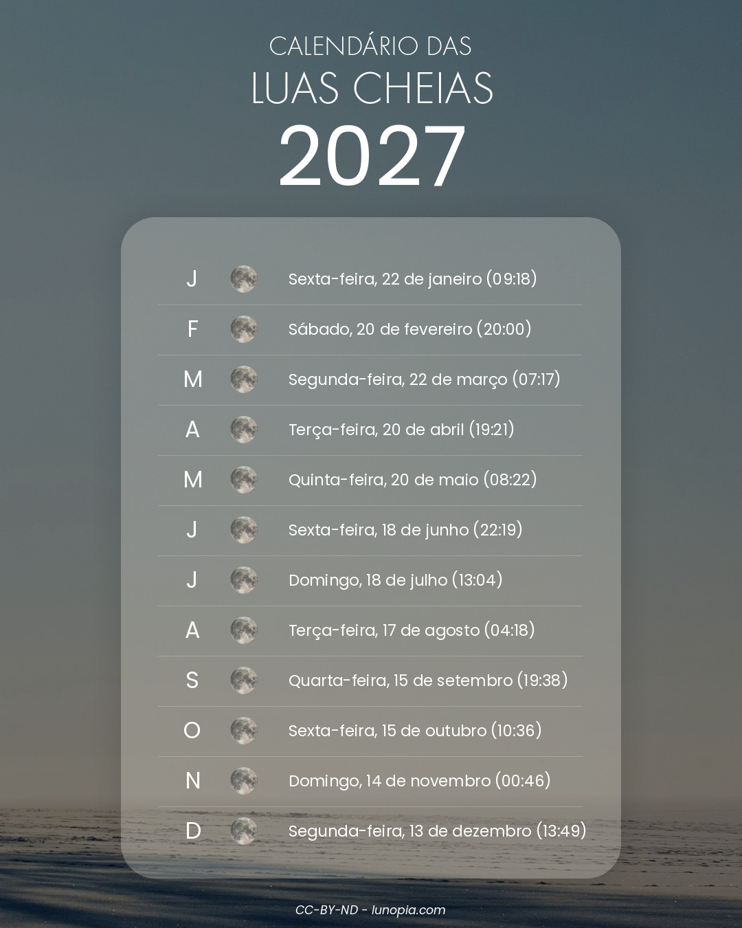| Dezembro | 2026 | quarta-feira, 23 de dezembro | 22:50 |