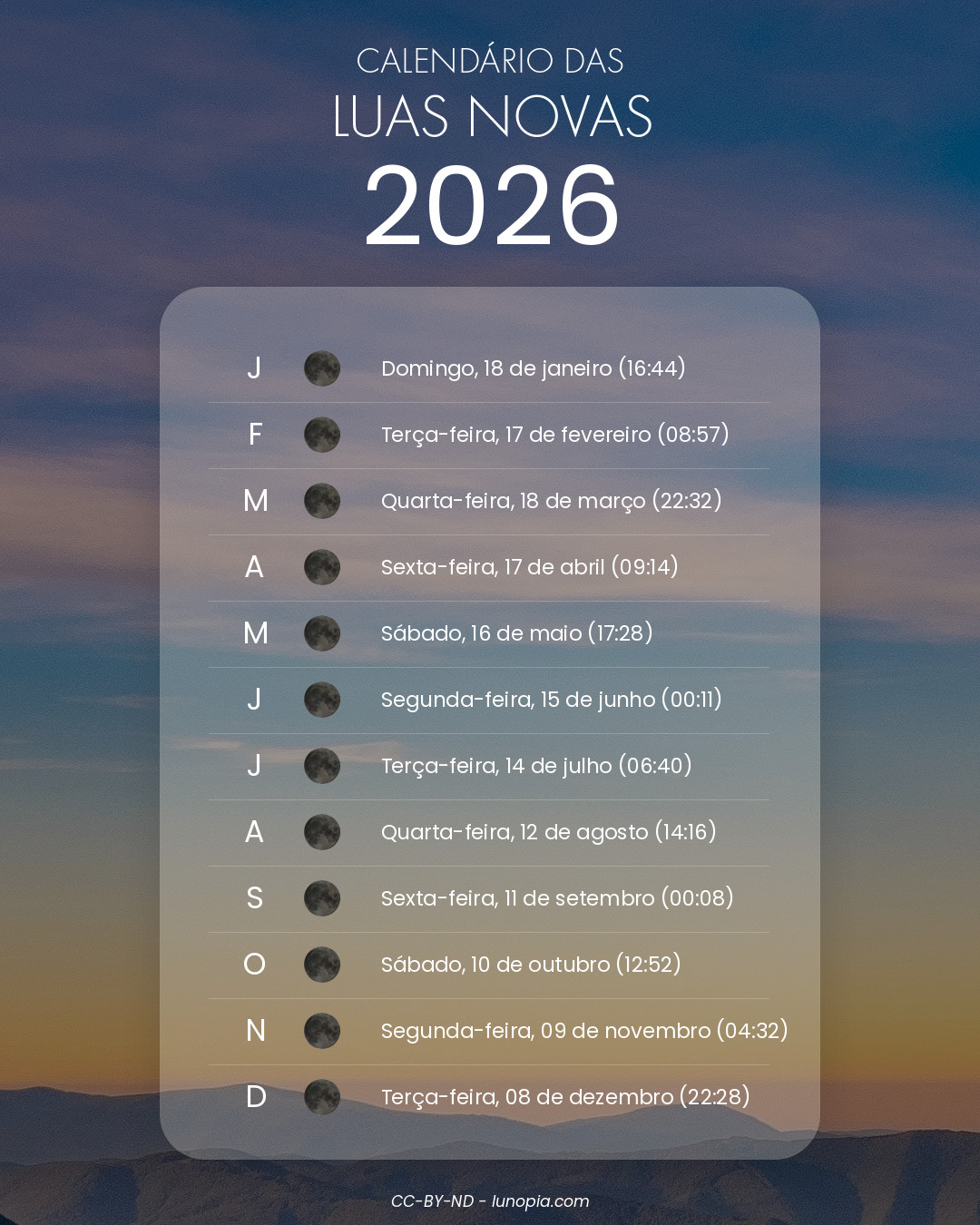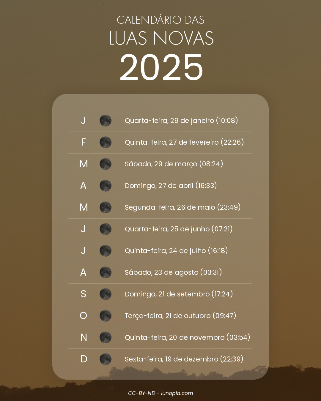 Calendário das luas novas: