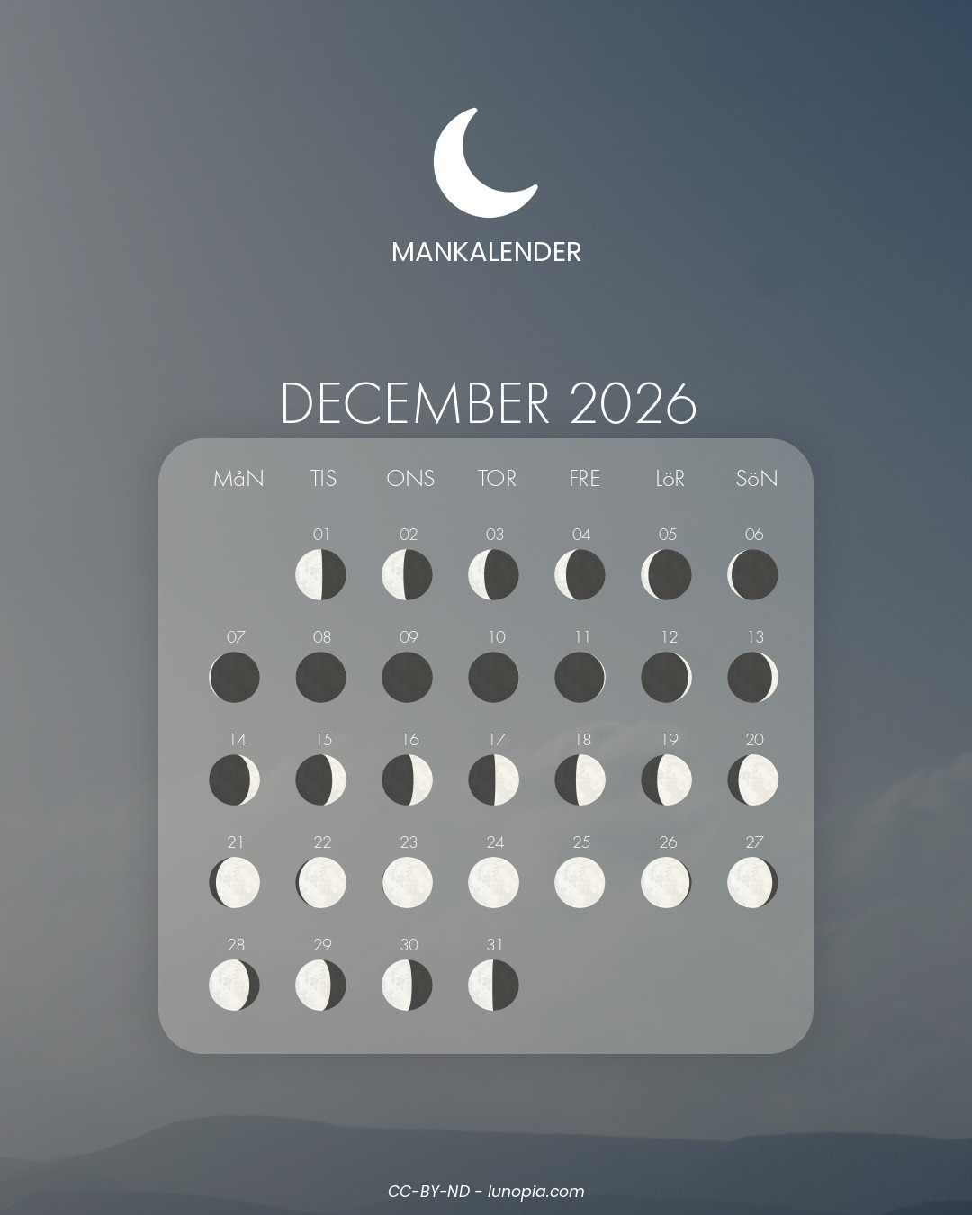 | Torsdag 19 februari 2026Tors 19 | 🌒 | 3 % | Nymåne skära |