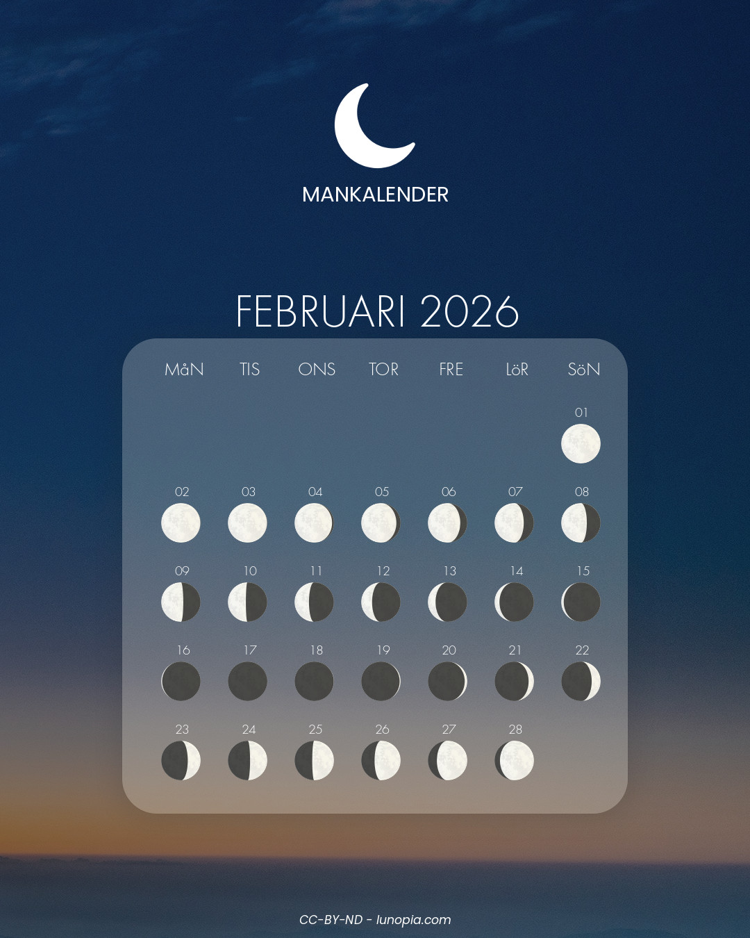 | Fredag 20 februari 2026Fre 20 | 🌒 | 7 % | Nymåne skära |