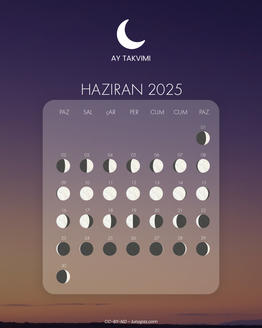| çarşamba 22 ekim 2025çar 22 | 🌒 | 1 % | Ilk hilal |