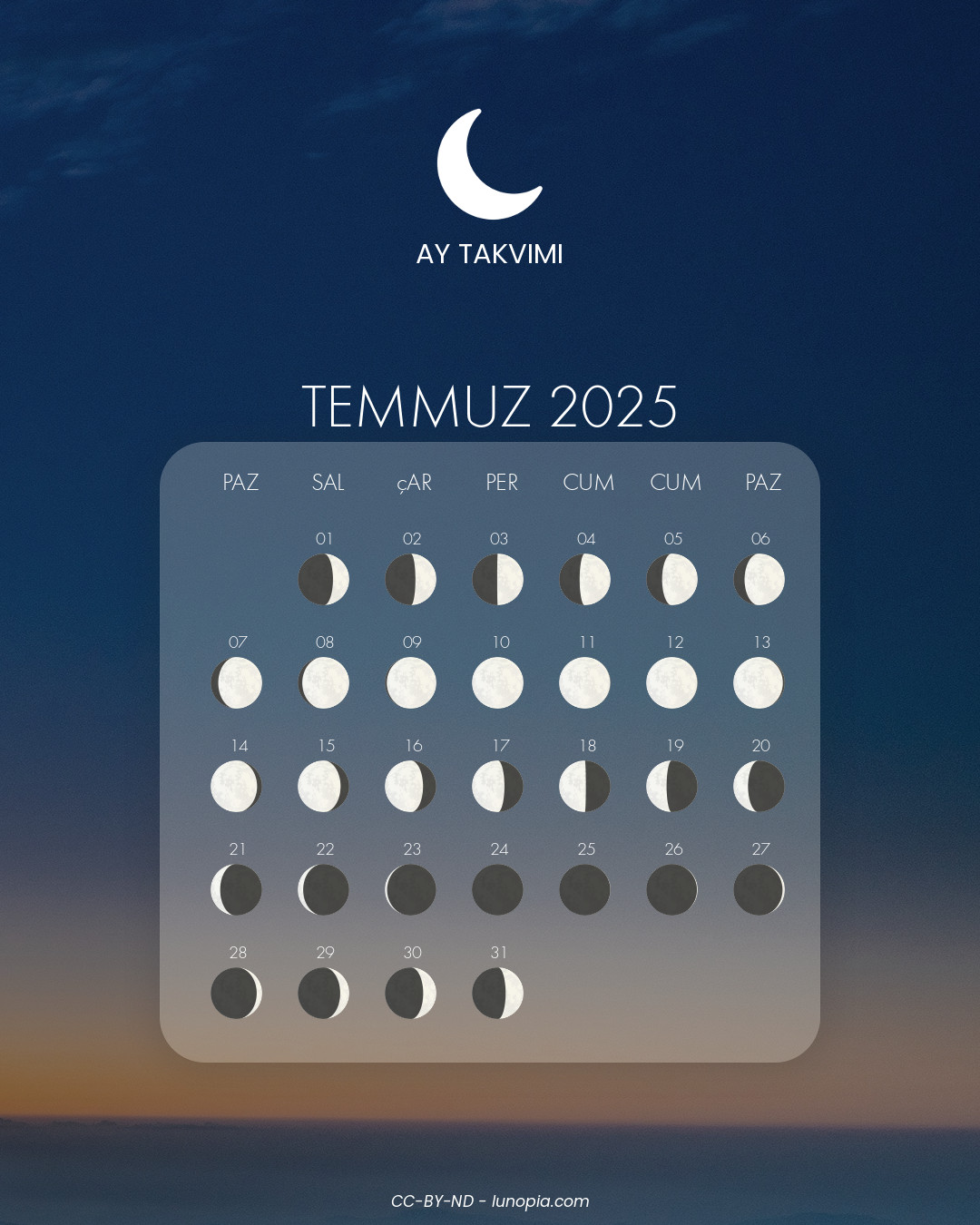 | Cumartesi 25 ekim 2025Cmt 25 | 🌒 | 10 % | Ilk hilal |